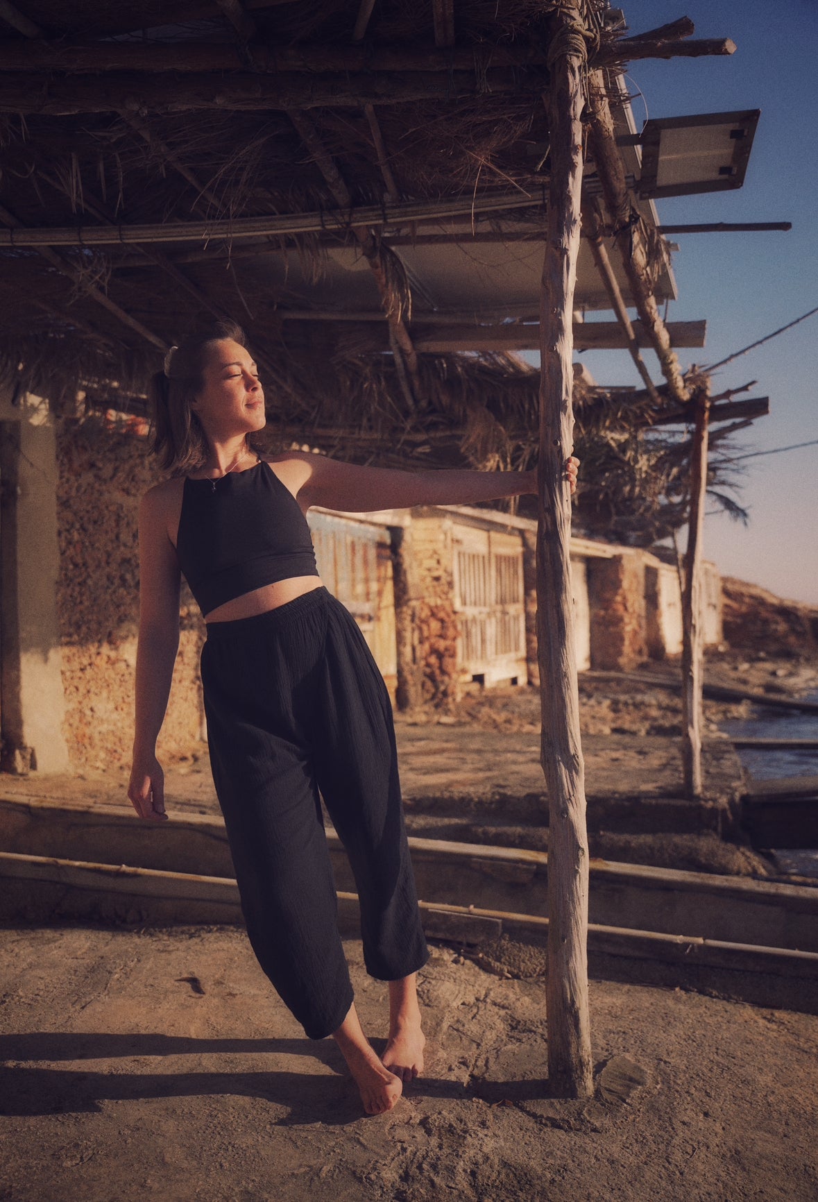 Inspired by the traditional Thai fisherman pant, this piece is designed for movement. Tried and tested for yoga, dance and capoeira, this design gives you plenty of room to move, as well as the comfort and ease of an elastic waistband.